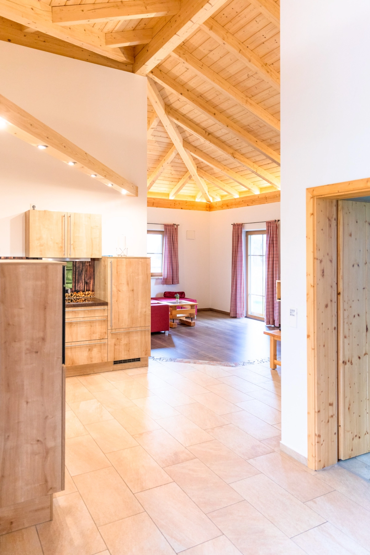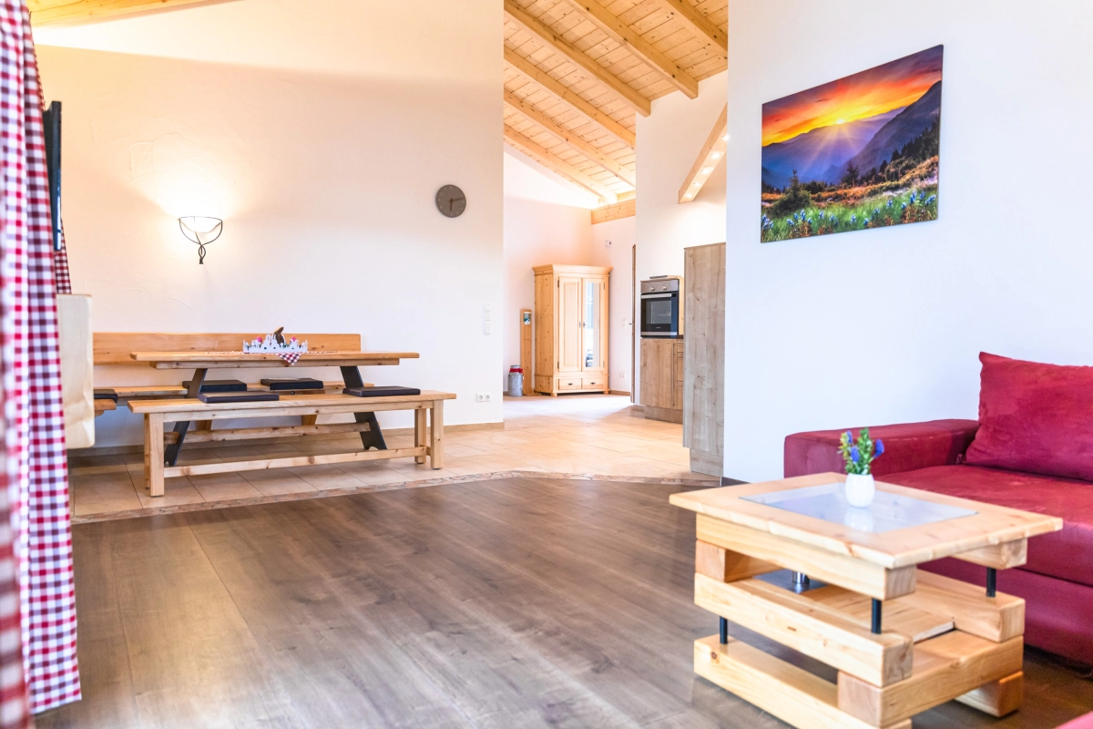 Herzlich willkommen im Ferienhaus Alpenglühen – mit rund 86 m² unsere größte Ferienwohnung. Sie erstreckt sich über eine komplette Doppelhaushälfte und bietet viel Platz zum Wohlfühlen. Warme Farben, indirekte LED-Beleuchtung und maßgefertigte Möbel schaffen ein modernes, zugleich gemütliches Ambiente – ideal zum Entspannen, Kochen oder um einfach die Aussicht zu genießen.