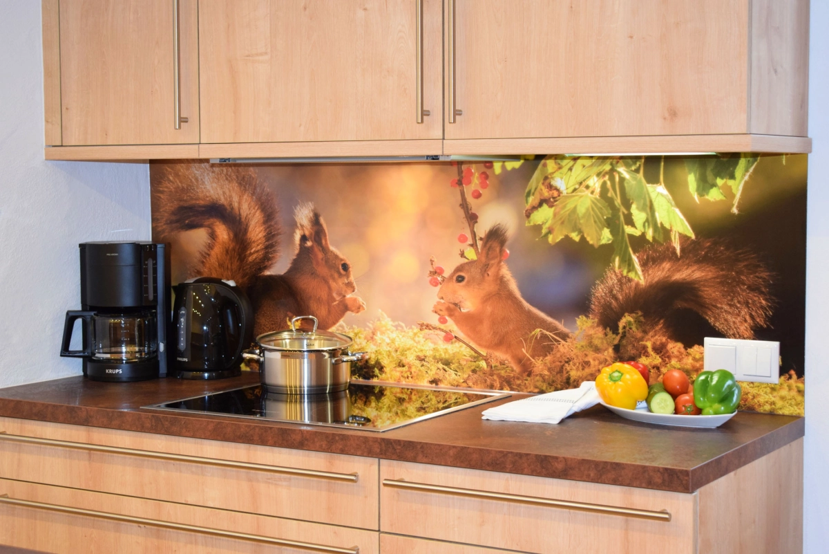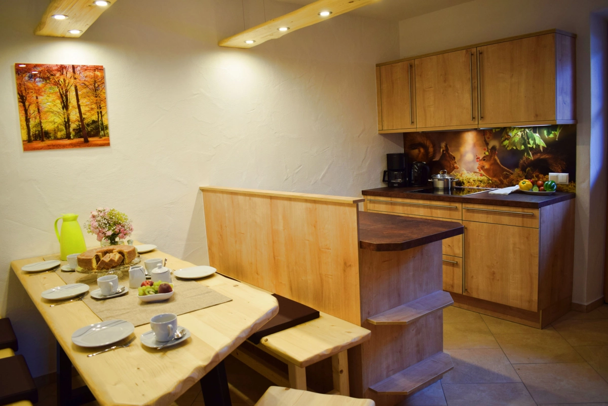 Im offenen Wohnbereich erwartet Sie ein gemütlicher Essplatz und ein Arbeitsplatz, an dem Sie entspannt Mails lesen oder die Kinder malen lassen können. Die Wohnung ist allergikerfreundlich, mit Kleinkinderausstattung, Steckdosensicherungen und einer begehbaren XXL-Dusche besonders familienfreundlich. Auf Wunsch sind Zustellbett oder Kinderbett möglich.